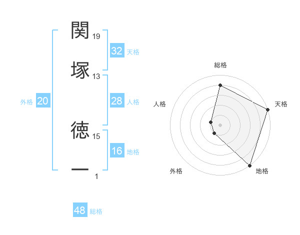 関塚 徳一さんを姓名の画数から五運を鑑定