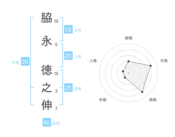 脇永 徳之伸さんを姓名の画数から五運を鑑定