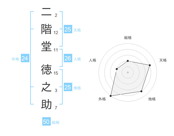 二階堂 徳之助さんを姓名の画数から五運を鑑定
