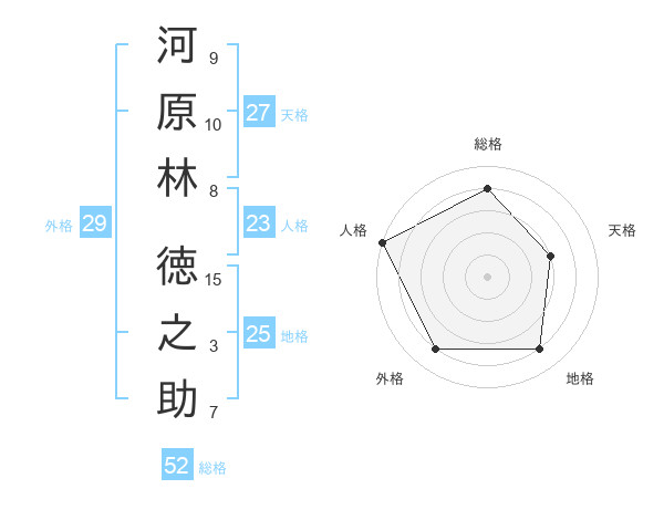 河原林 徳之助さんを姓名の画数から五運を鑑定