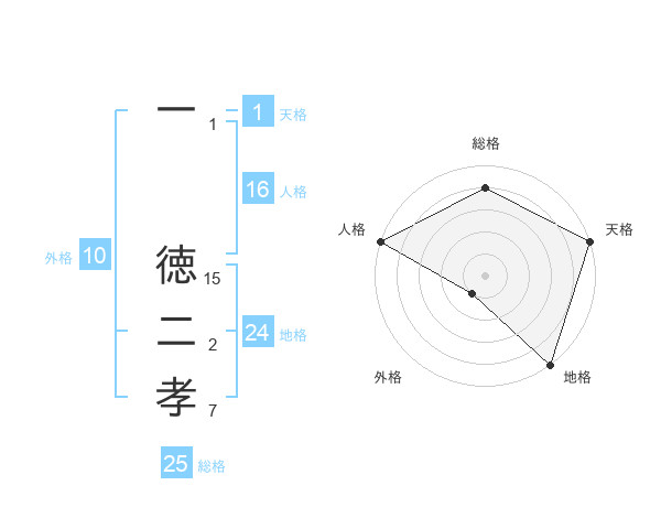 一 徳二孝さんを姓名の画数から五運を鑑定