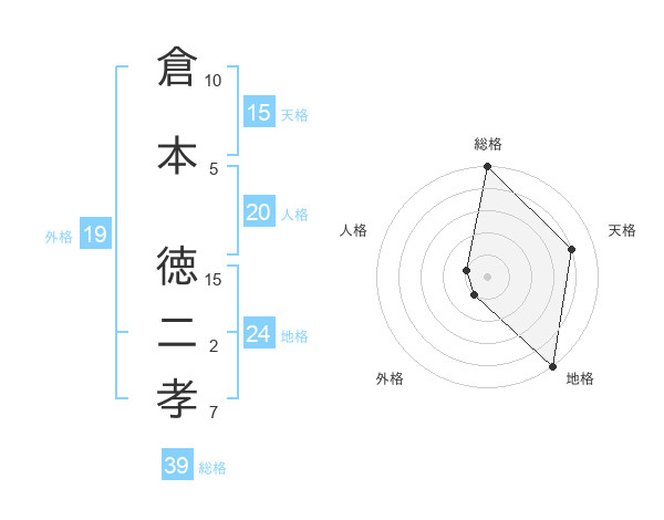 倉本 徳二孝さんの総格は39画の5点!