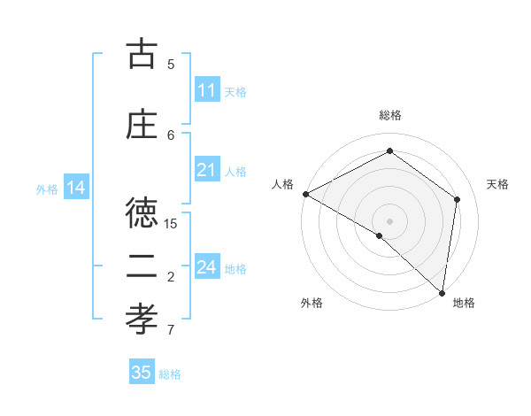古庄 徳二孝さんを姓名の画数から五運を鑑定