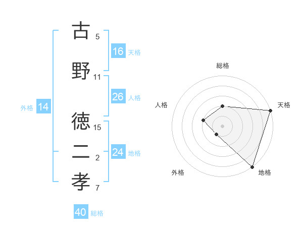 古野 徳二孝さんの総格は40画の2点!