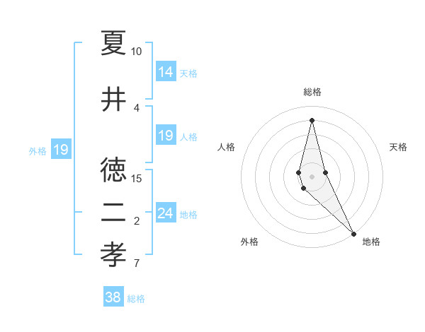 夏井 徳二孝さんの総格は38画の4点!