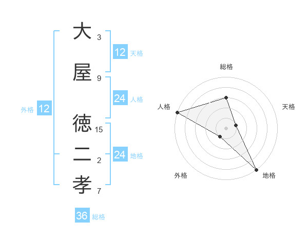 大屋 徳二孝さんの外格は12画の1点!