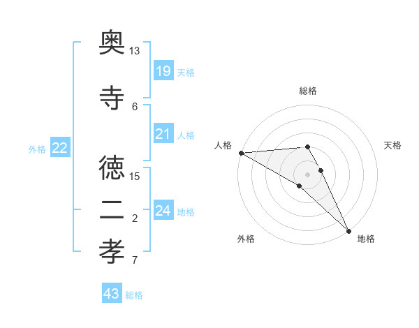 奥寺 徳二孝さんの地格は24画の5点!