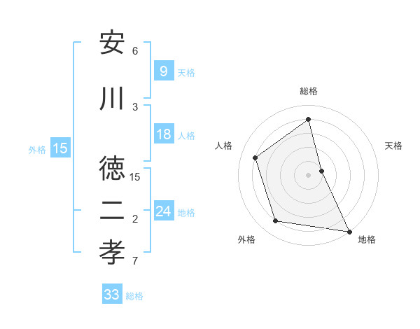 安川 徳二孝さんを姓名の画数から五運を鑑定