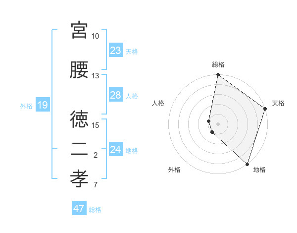 宮腰 徳二孝さんを姓名の画数から五運を鑑定