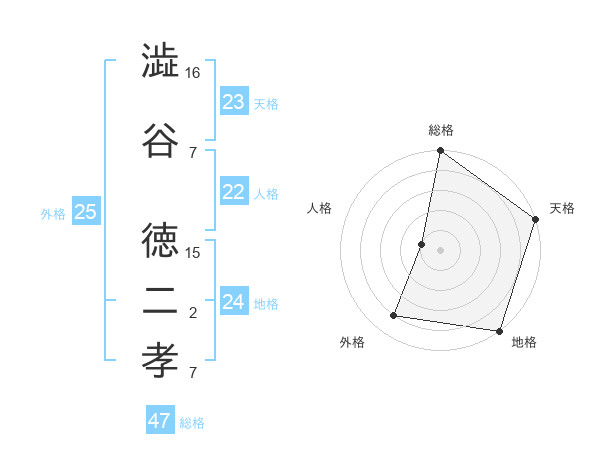 澁谷 徳二孝さんを姓名の画数から五運を鑑定