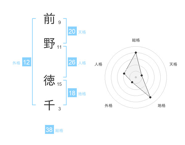 前野 徳千さんの総格は38画の4点!