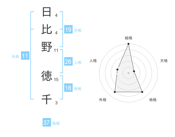日比野 徳千さんを姓名の画数から五運を鑑定