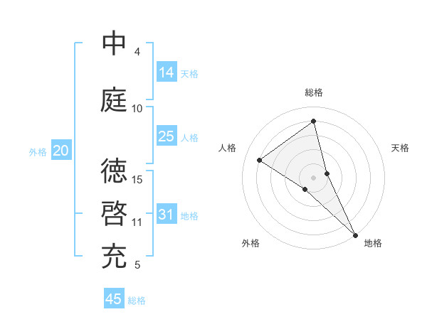 中庭 徳啓充さんを姓名の画数から五運を鑑定