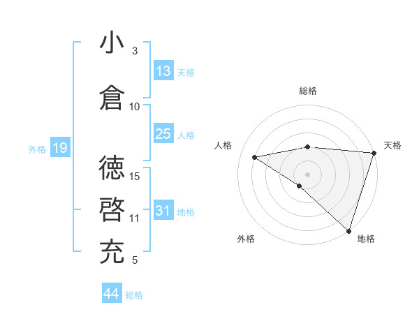 小倉 徳啓充さんを姓名の画数から五運を鑑定