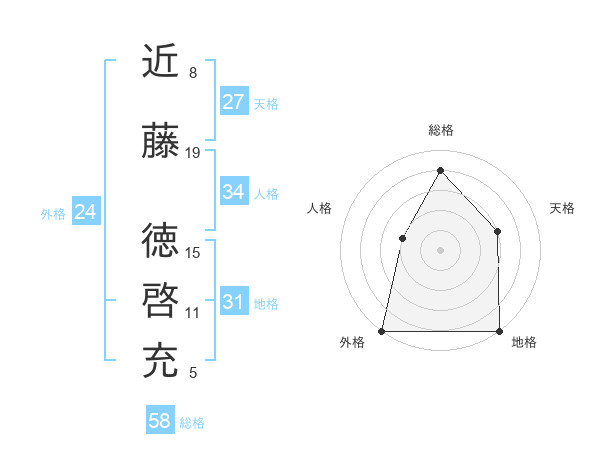 近藤 徳啓充さんを姓名の画数から五運を鑑定