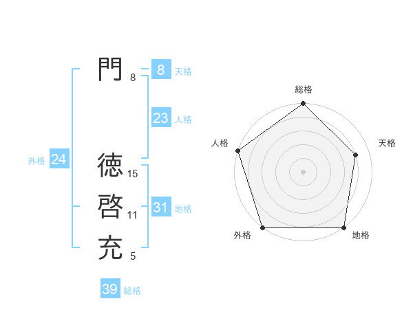門 徳啓充さんを姓名の画数から五運を鑑定