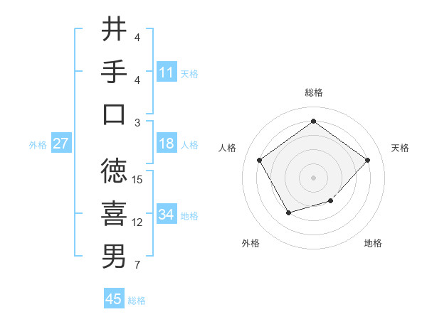 井手口 徳喜男さんを姓名の画数から五運を鑑定
