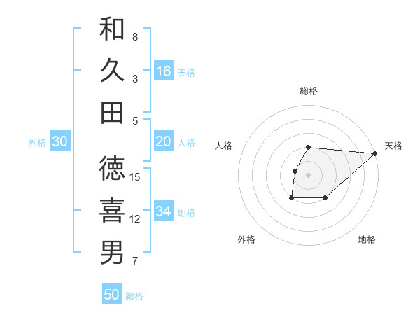 和久田 徳喜男さんを姓名の画数から五運を鑑定