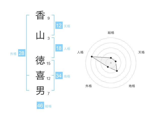 香山 徳喜男さんの総格は46画の1点!