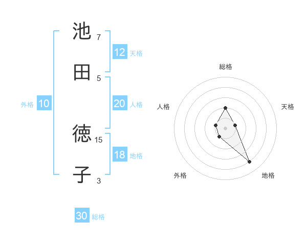 池田 徳子さんの天格は12画の1点!