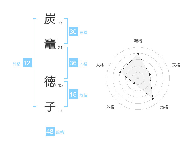 炭竈 徳子さんの総格は48画の4点!