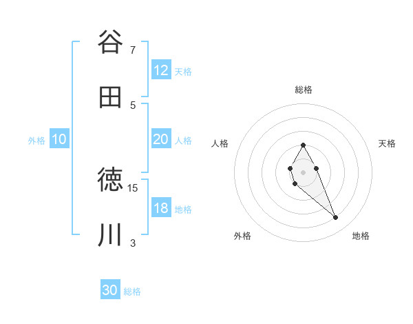 谷田 徳川さんを姓名の画数から五運を鑑定