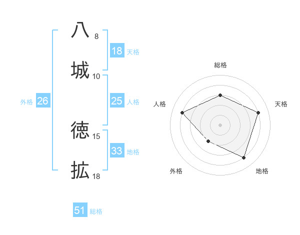八城 徳拡さんを姓名の画数から五運を鑑定