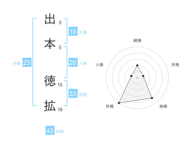 出本 徳拡さんの外格は23画の5点!