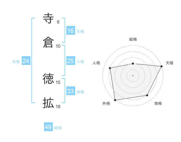 寺倉 徳拡さんを姓名の画数から五運を鑑定