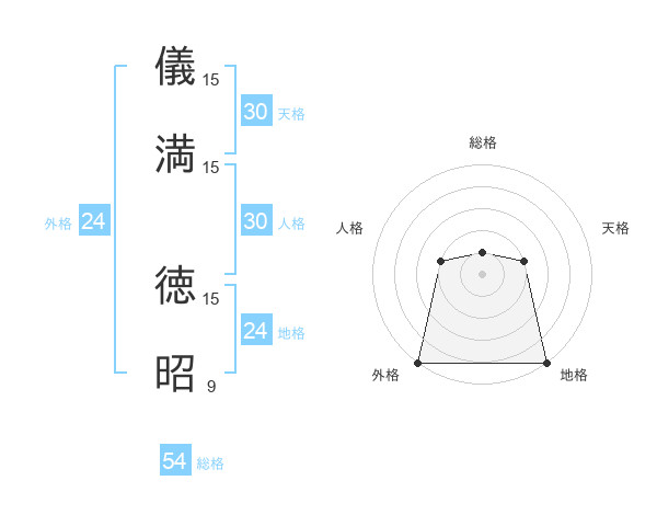 儀満 徳昭さんの総格は54画の1点!