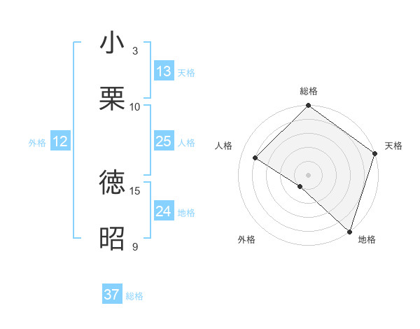 小栗 徳昭さんの総格は37画の5点!
