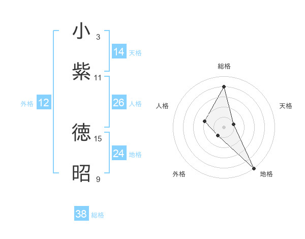 小紫 徳昭さんを姓名の画数から五運を鑑定