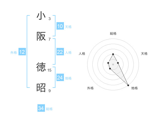 小阪 徳昭さんの総格は34画の2点!