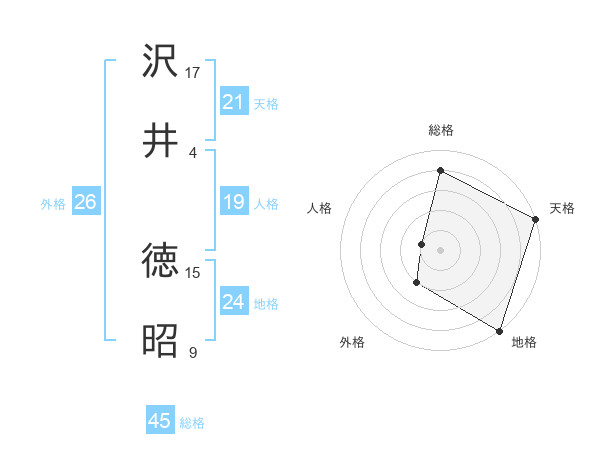 沢井 徳昭さんの総格は45画の4点!