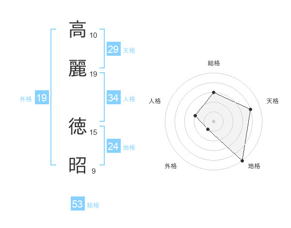 高麗 徳昭さんの総格は53画の3点!