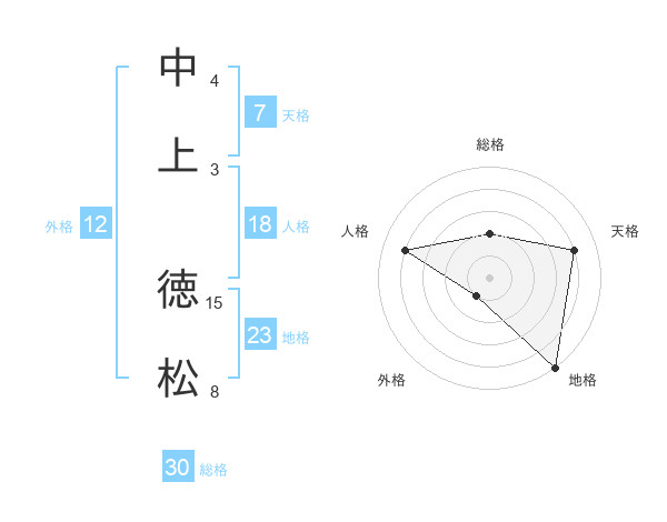 中上 徳松さんの総格は30画の2点!
