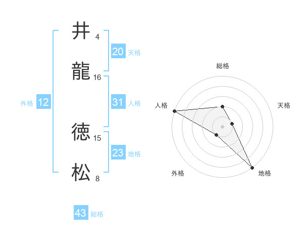 井龍 徳松さんを姓名の画数から五運を鑑定