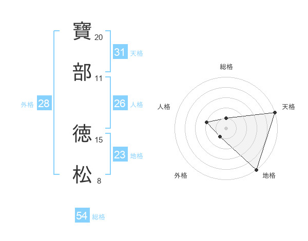 寶部 徳松さんの総格は54画の1点!