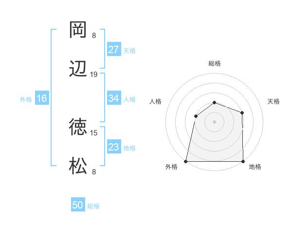 岡辺 徳松さんの外格は16画の5点!