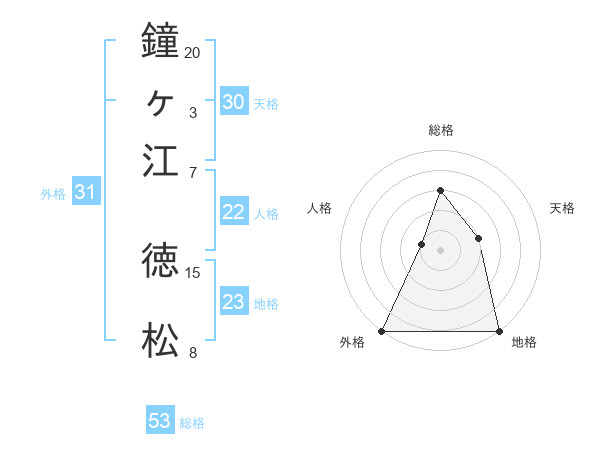 鐘ヶ江 徳松さんを姓名の画数から五運を鑑定