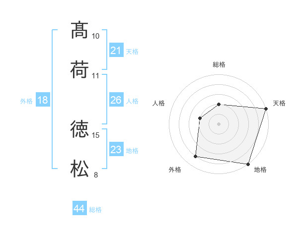 髙荷 徳松さんの総格は44画の2点!