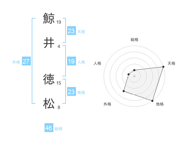 鯨井 徳松さんの天格は23画の5点!