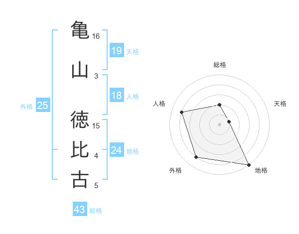 亀山 徳比古さんを姓名の画数から五運を鑑定