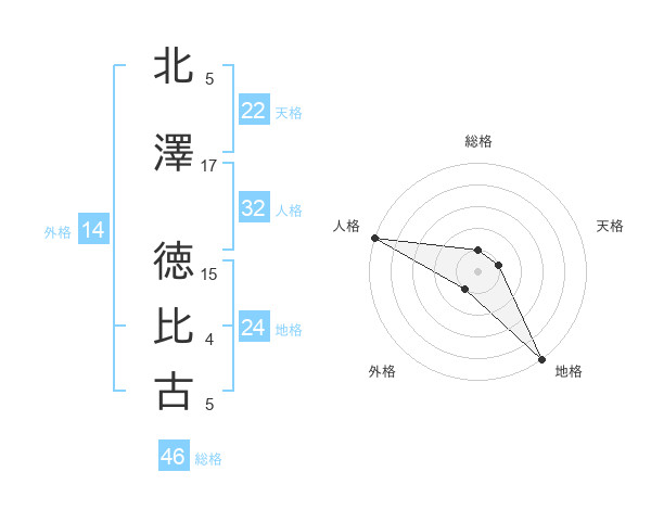 北澤 徳比古さんを姓名の画数から五運を鑑定