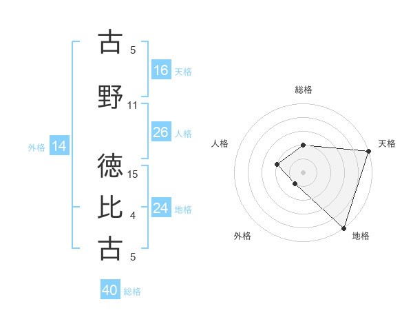 古野 徳比古さんを姓名の画数から五運を鑑定