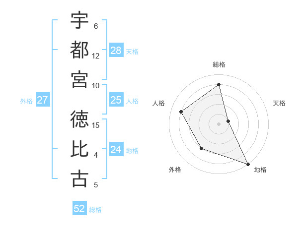 宇都宮 徳比古さんの総格は52画の4点!