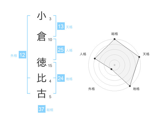 小倉 徳比古さんを姓名の画数から五運を鑑定