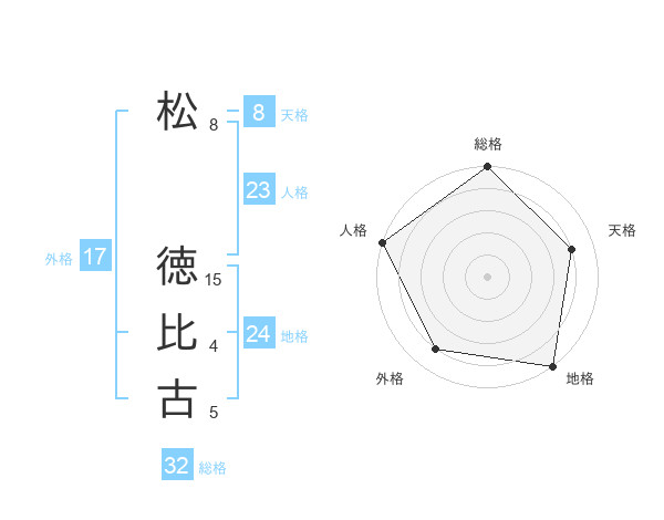 松 徳比古さんの総格は32画の5点!