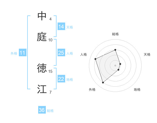 中庭 徳江さんを姓名の画数から五運を鑑定