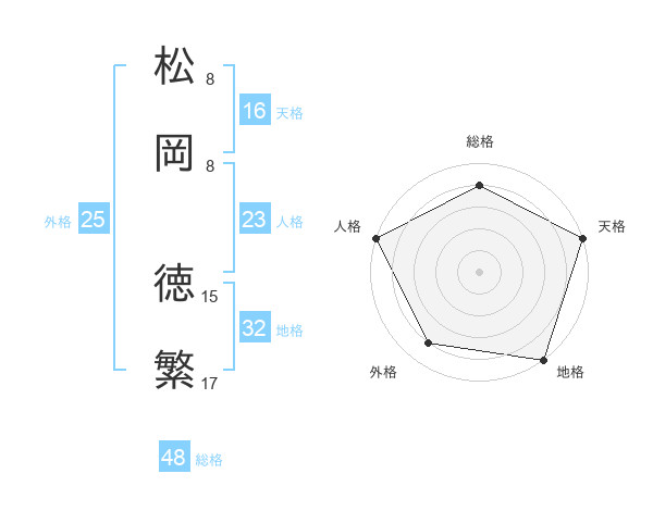 松岡 徳繁さんの総格は48画の4点!